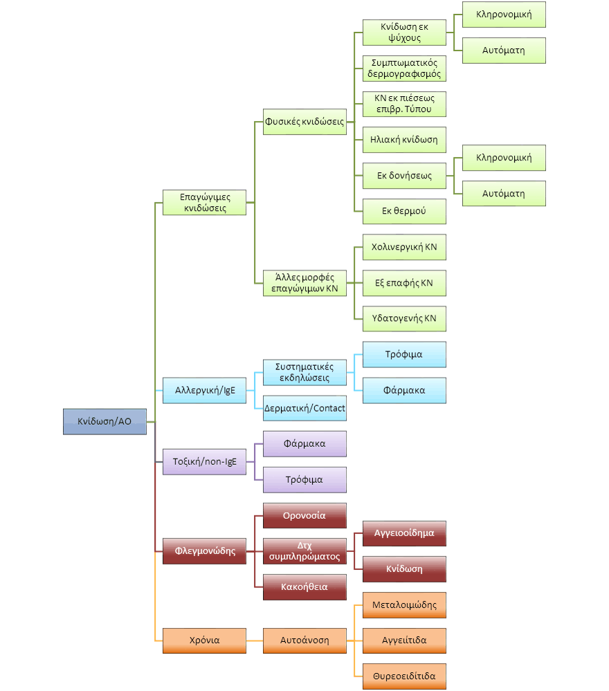 Ανάλογα λοιπόν με τα αίτια, η κνίδωση μπορεί να ταξινομηθεί όπως φαίνεται στην εικόνα 2.